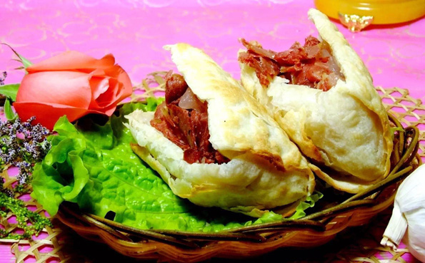 是一種面食,外表看起來像漢堡包,里面夾著驢肉,外脆內(nèi)軟,濃香撲鼻。