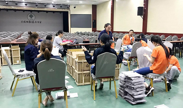 6000余套秩序冊、工作證、手提袋、文件袋、資料本、客戶T恤等物料也已領取、分裝,并打包完畢。每一流程都專人負責,每一事項都認真細致,大禹人擦亮雙眼,只為將這些會議用品安全無誤地發往北京!