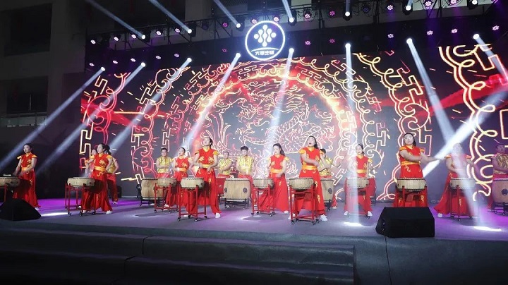 慷慨激昂的擊鼓表演《鼓舞中國》。