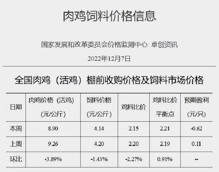 1.肉雞價格為肉雞(活雞)棚前收購價格