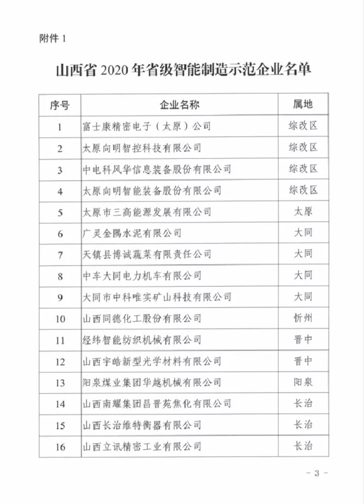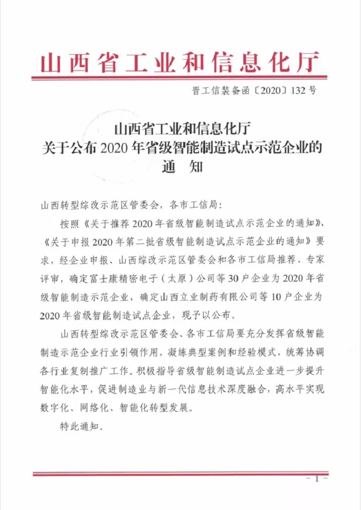【喜訊】大禹生物榮獲山西省2020年省級智能制造示范企業榮譽稱號