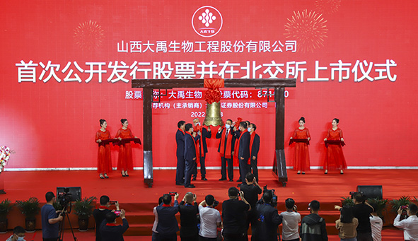 2022年5月18日,隨著開(kāi)市鐘聲?shū)Q響,山西大禹生物工程股份有限公司(股票代碼:871970)在北京證券交易所成功上市。