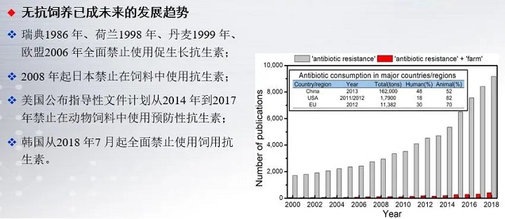 隨著抗生素在動物體內(nèi)產(chǎn)生耐藥性以及對生態(tài)環(huán)境的污染,無抗飼養(yǎng)已成為未來畜牧業(yè)的發(fā)展趨勢,國家自2020年7月1日起禁止使用飼用抗生素,同時我國已具備進入無抗飼料的時代基礎(chǔ)。